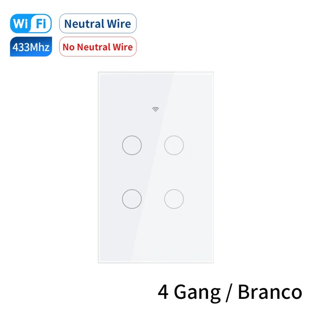 Tuya Smart Wifi Touch Switch Neutral Wire/No Neutral Wire Required US 1/2/3/4 Gang Light Switch For Alexa Google Home Alice